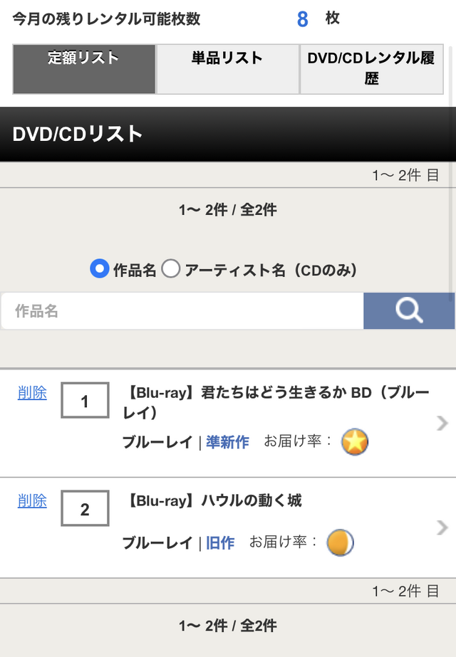 データをやり取りする動画配信サービスと違い、TSUTAYA DISCASは宅配レンタルサービスなので、在庫切れが発生します。