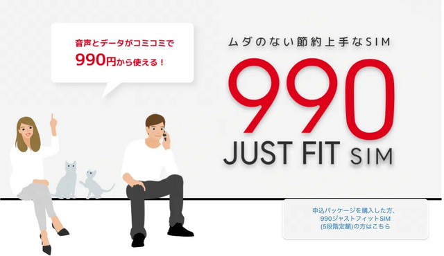 b-mobileはデータ容量1GB1,089円の「990 JUST FIT」のプランを提供しています。データ容量が1GB増えるたびに、プラス220円かかる仕組みになっています。データ容量の上限を2GBに設定した場合、1,309円で利用可能です。