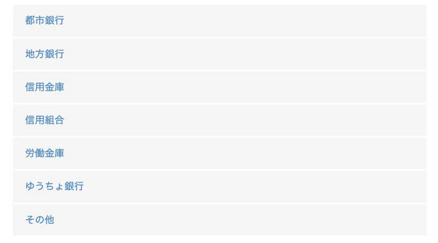金融機関を選択する画面に移動するので「口座振替」に使用する銀行口座を選択。