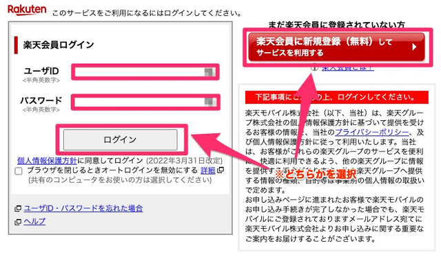 プラン選択したら楽天会員にログインする必要があります。