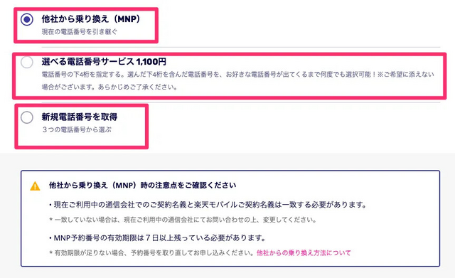 次に「乗り換え(MNP)」か「新規契約」を選択していきます。