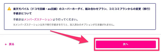 「乗り換え」と「新規契約」の選択が終わったら「次へ」をタップします。