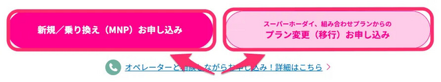 公式サイトにある「新規/乗り換え」は右、「プラン変更」は左をタップしましょう。
