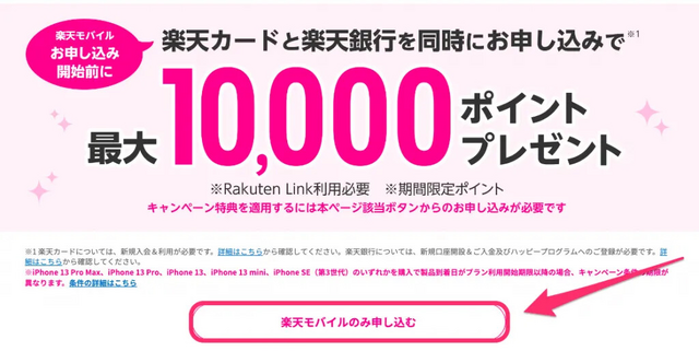 「お申し込み画面」に移動するので「楽天モバイルのみ申し込む」をタップします。