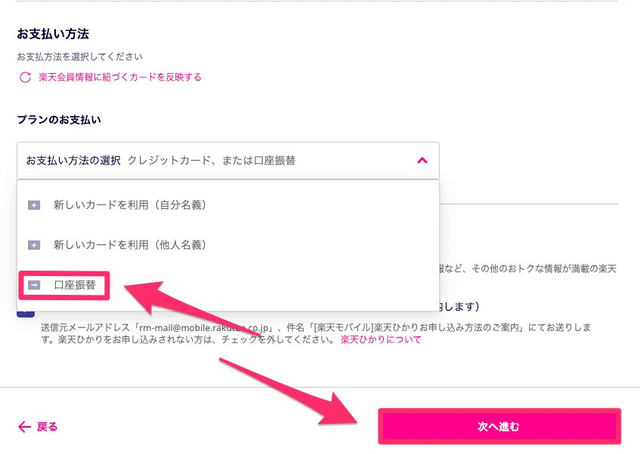 楽天モバイルに口座振替でお申し込みする手順を紹介します。