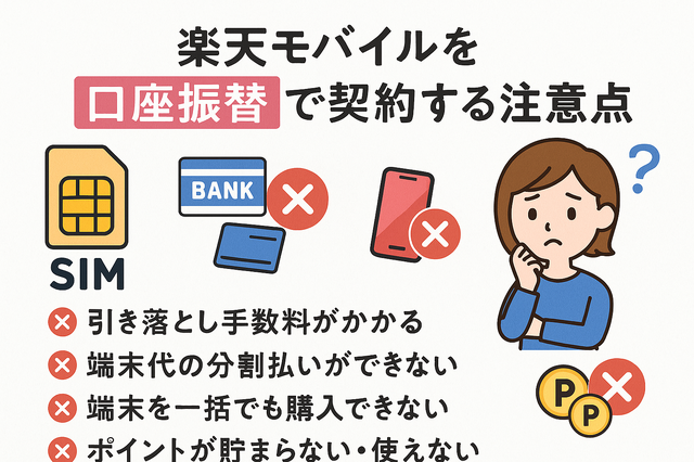楽天モバイルを「デビットカード」「口座振替」でお支払いした場合の注意点を紹介します。