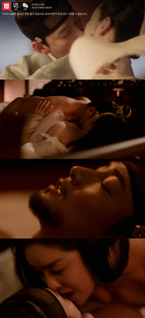 第1話から衝撃的だった。李芳遠と元敬が宮女たちが守る中で遠慮なく愛を交わし、濃厚なベッドシーンは約2分間続いた。成熟した雰囲気と胸の露出は、19禁(成人向け)のレッテルのもとでそのまま家庭に届けられた。