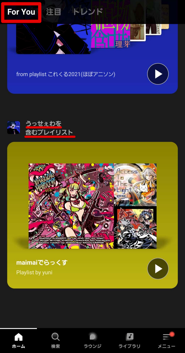 For Youのおすすめプレイリスト