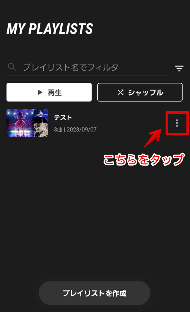 その後、マイプレイリストから、共有したいプレイリストの「︙」をタップします。