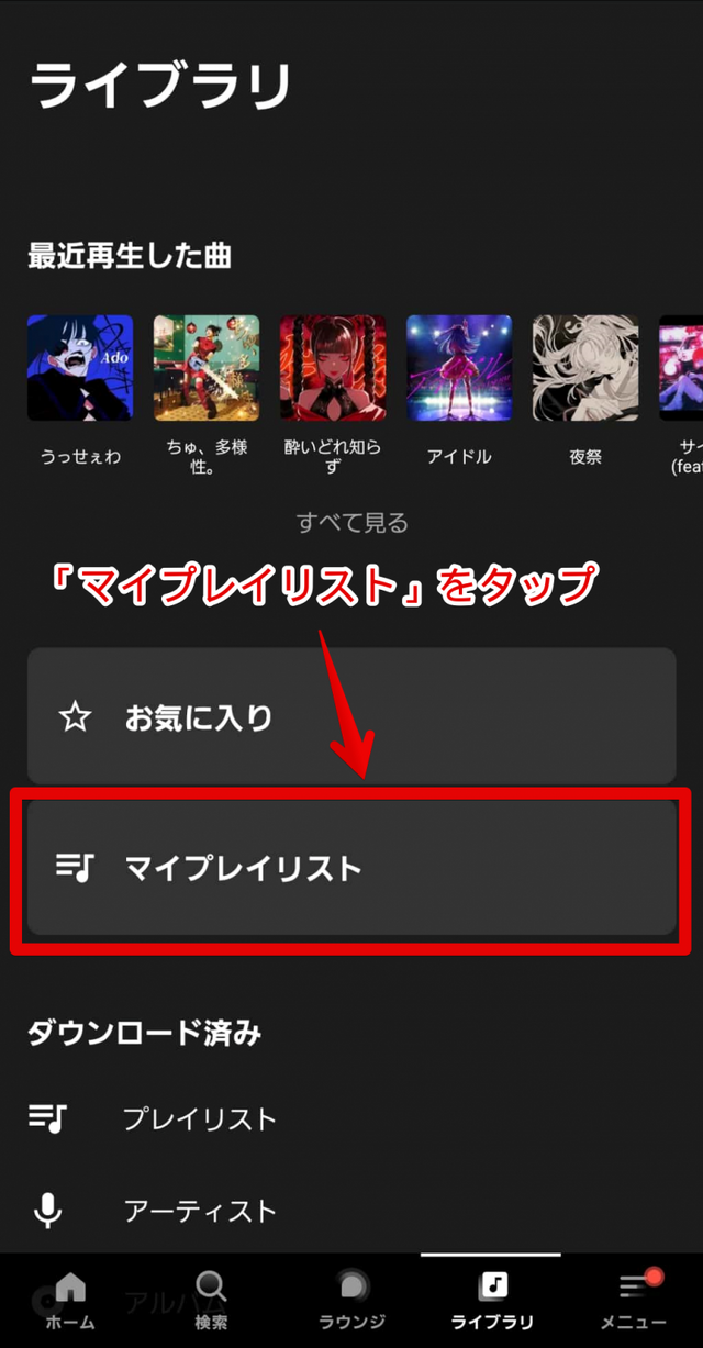 次に「マイプレイリスト」をタップします。