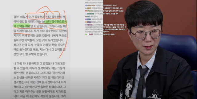 さらに、「人間キム・スヒョンとスターキム・スヒョンが完全に違っていたのに、スターとしての選択をする?それも問題だ。私たちはスターとしてのキム・スヒョンを見て彼を評価しているのに、実際の生活はそうではなかったという話になる。あの立場文は間違っていると思う。ああいう書き方をすべきではなかった」と厳しく批判した。