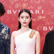 高石は、肩のアクセントが印象的な「ルイ・ヴィトン(LOUIS VUITTON)」の白ドレスに身を包み登場。華やかなレッドカーペットを歩き、授賞式に参加した。