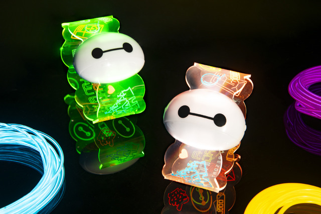 東京ディズニーランド、東京ディズニーシーでは、カラフルなネオンと表情豊かなベイマックスがデザインされた、みんなで盛り上がれるグッズを7月1日(火)に発売。光るバングルは、腕の振動に反応して色が変わる機能がポイントで、ベイマックスのハッピーライドなどで身につけ、音楽に合わせて腕を振って盛り上がろう。