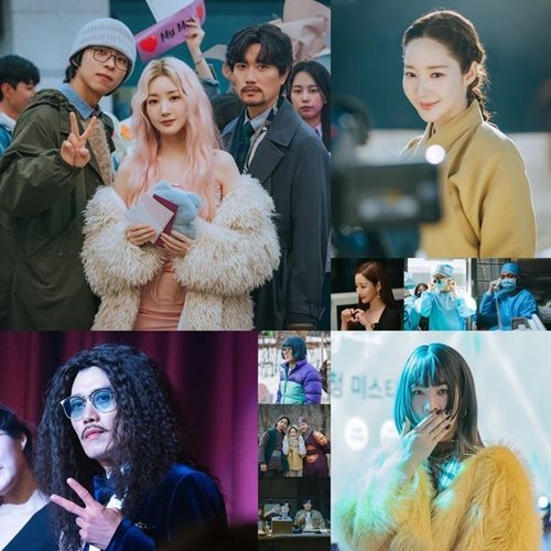 また、パク・ミニョン、パク・ヒスン、チュ・ジョンヒョクは撮影後もチームの絆を発揮。三角関係を描いた“推奴(チュノ)パロディ”シーンの撮影後には仲良く3ショットを披露し、パク・ミニョンのアイドル級のビジュアルが際立った“メリユ空港お出迎え”シーンの後には、キャラクターになりきった記念ショットで和やかな雰囲気を漂わせた。