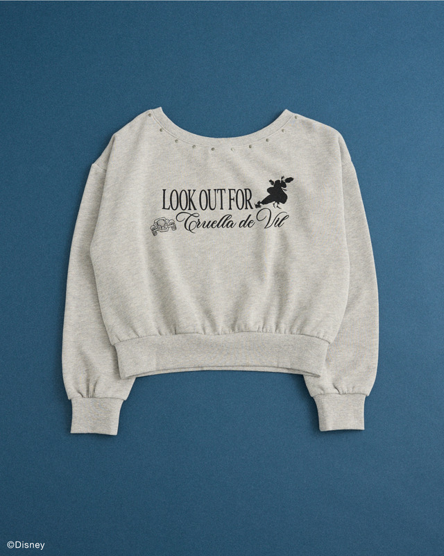 ポロ衿スウェットには、「ローリー」と「パッチ」が仲良く寄り添う姿がエンブレム風に表現されている。また、手書き風アートをバックプリントしたスウェットや、毛皮好きの悪女「クルエラ」がモチーフのオフショルスウェットも用意。