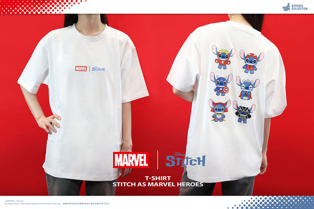 ホットトイズがオリジナルで製作した「ホットトイズ・アパレル」より、マーベルの人気キャラクターとマッシュアップした、ホットトイズ限定デザインのスティッチがTシャツになって登場。ラインアップは全4種。それぞれサイズはS~XLのユニセックスとなっている。