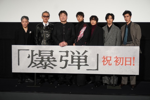 映画『爆弾』の初日舞台挨拶が10月31日(金)、東京・新宿ピカデリーで行われ、主演の山田裕貴、共演する染谷将太、坂東龍汰、寛一郎、渡部篤郎、佐藤二朗、メガホンをとった永井聡監督(『キャラクター』『帝一の國』)が出席した。