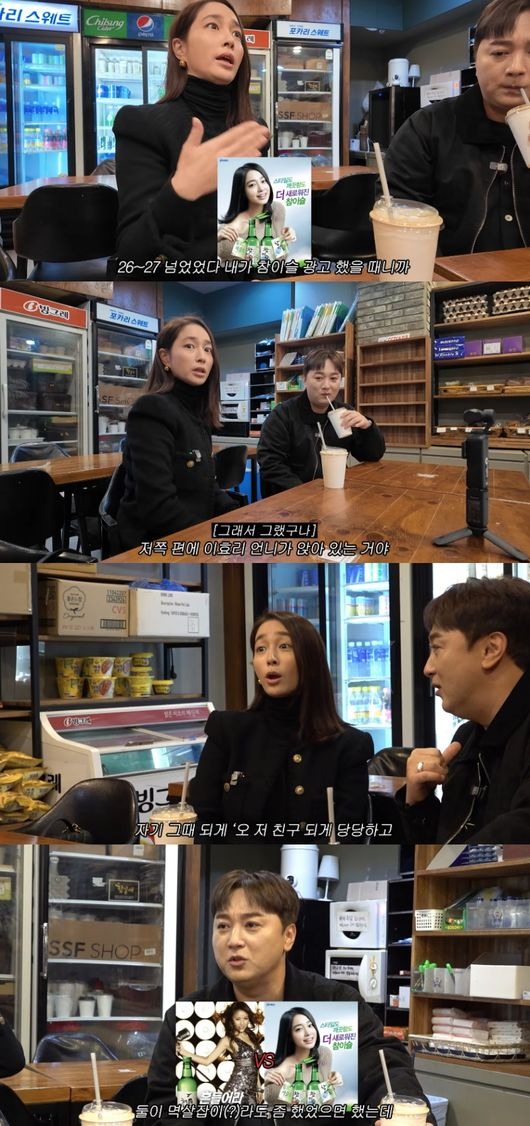 イ・ミンジョンは「ある飲食店に行った時のこと。大学を卒業してすぐ、26~27歳くらいの頃で、ちょうど私が焼酎の広告モデルをしていた時期だった」と話し、店のテーブルごとに異なる銘柄の焼酎を注文し合い、まるで“広告バトル”のような状況が起きていた日を振り返った。