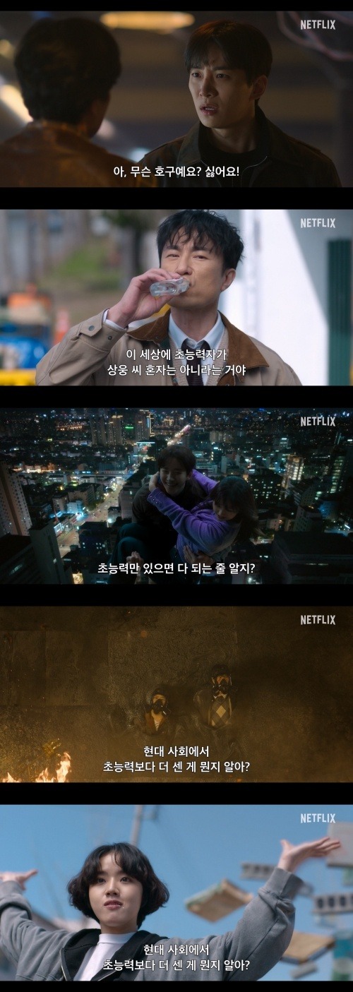 酒を飲めば壁を通り抜け、食べれば食べるほど念力が発動する仲間たちとともに、“給料をはたいて”能力を使わねばならないサンウン。そんな彼にジョアンナが「現代社会で超能力より強いものが何かわかる?それは“能力(スペック)”よ」と語るシーンは、能力主義社会への皮肉と共感を喚起し、手元に現金がなければ力すら使えないサンウンが“凡人会”にどう立ち向かうのかを気にさせる。