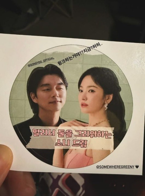 特に注目を集めたのは、コーヒーカーに貼られたステッカーに対する彼女の“ひとこと”だった。ステッカーにはソン・ヘギョとコン・ユのツーショットが印刷されており、コン・ユがウィンクをしている写真が使われていた。それについてソン・ヘギョは、「ウィンクしてるの?今?はは…」と茶目っ気たっぷりの反応を見せ、ファンの笑いを誘った。