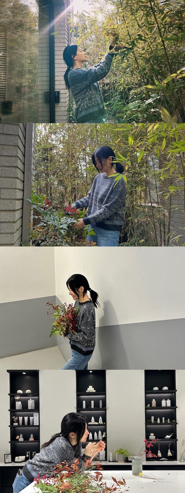 公開された写真には、庭で花を生けたり、植物と向き合うイ・ヨンエの姿が収められている。