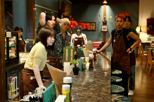 「シナントロープ」で働く8人には、水上恒司演じる主人公・都成剣之介、山田杏奈演じる都成が密かに思いを寄せるヒロイン・水町ことみをはじめ、明るいお調子者「キバタン」こと木場幹太(坂東龍汰)、地味で真面目なお嬢様・里見奈々(影山優佳)、心優しい漫画家志望の田丸哲也(望月歩)。さらに、エキセントリックなメンヘラガール・室田環那(鳴海唯)、静かで不気味な新人バイト・志沢匠(萩原護)、夢を追うバンドマン・塚田竜馬(高橋侃)。ほかにも、染谷将太、遠藤雄弥、アフロ、森田想ら個性豊かなキャストが集結している。