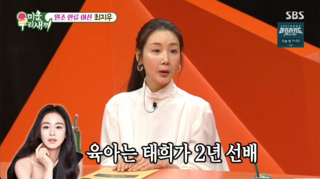 韓国バラエティ番組『憎いわが子』(SBS)に出演した女優チェ・ジウが、キム・テヒとの特別な縁を語った。