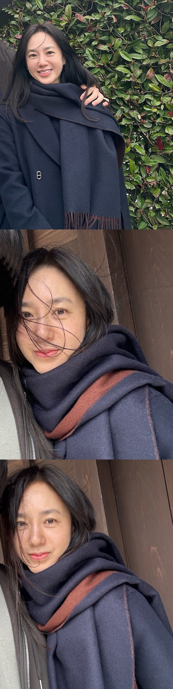 公開された写真の中でパク・チュミは、花冷え(寒の戻り)の気候に合わせてしっかりと防寒対策をして外出している。高級感あふれるコートとマフラーを身につけた彼女は、夫と一緒に外出しているとみられるが、夫の顔が写らないよう、自身の姿のみを公開した。