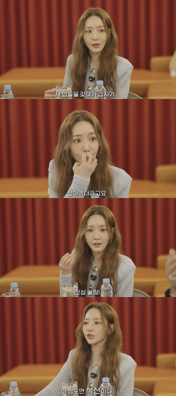「撮影が始まったら、彼が私の唇を食べるような勢いだった。私が驚く演技をする場面だったが、本当に驚いてしまった」と語り、「どうして3回しか経験がないのに、そんなふうにキスシーンができるんだろう。あれはもう“吸引”レベルだった」と話したパク・ミニョンは、「ハジュンさんは唇が厚くて口も大きいほう。見れば分かると思う。私の唇が一瞬、頬まで吸い込まれた」と付け加え、みんなの笑いを誘った。
