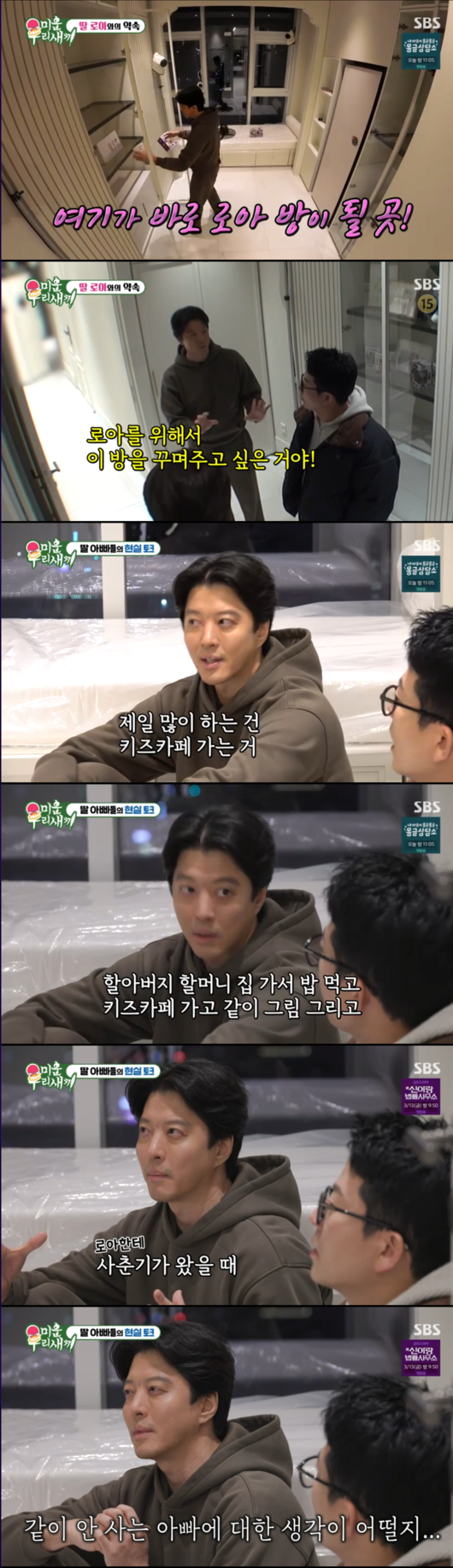 以前、ロアちゃんに「引っ越したら絶対に部屋を作ってあげる」と約束していたイ・ドンゴンは、娘の目線に合わせて自ら描いた絵を飾り、棚にはロアちゃんの好きなものを心を込めて並べた。彼は飾り棚を整理しながら、満足げな表情を浮かべていた。
