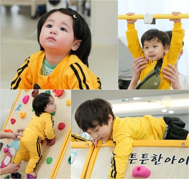 これに対しキム・ジュノは、ハルくんの筋力アップのためのトレーニングコースを提案。さらに、「上位1%の運動DNA」の持ち主である次男ジョンウくんを助教として抜擢し、鉄棒やクライミングのお手本を披露させる。