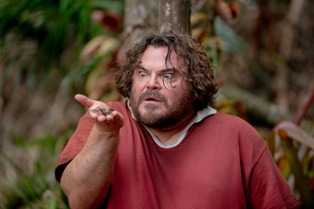 この度解禁された場面写真には、映画愛をたぎらせる中年たちが背後に迫る影によって緊迫していく様子が捉えられている。ネチョネチョした上半身に豚を括り付けられている悲劇的な状況のダグ(ジャック・ブラック)のインパクトは強烈だ。