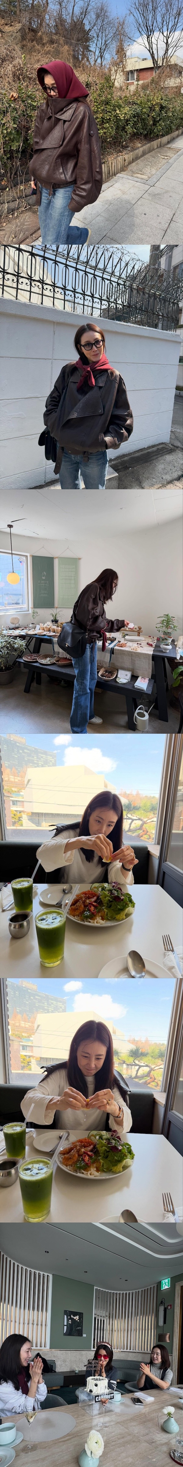 写真には、レザージャケットにジーンズ、サングラス姿でカメラに向かって微笑むチェ・ジウの姿が。顔の一部は隠れているものの、すらりとしたスタイルが際立ち、見る者の感嘆を誘う。また、食事中の飾らない様子も公開され、その自然体の魅力が見る者の微笑みを誘った。