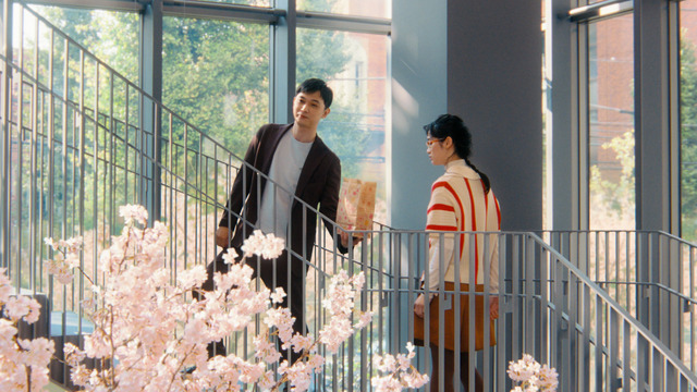 CMでは、歌まじりでスキップしながら帰社する吉沢。そんな姿を見た後輩役の野内がすれ違いざまに「春ですね、先輩」と声をかける。
