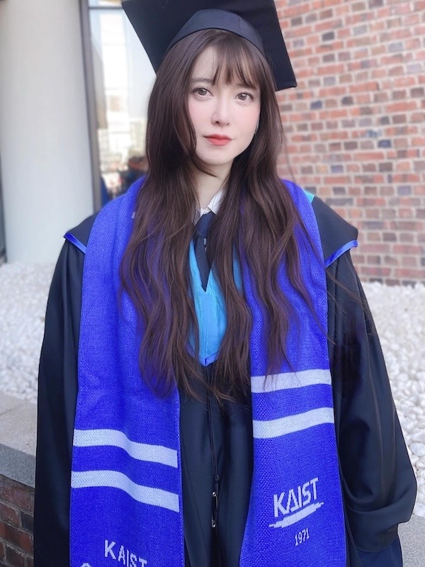 さらに、名門・成均館大学の芸術学部を首席で卒業した後には、KAIST(韓国科学技術院)のムンスル未来戦略大学院に進学し、見事に修士号まで獲得。美貌と知性、そして類まれな行動力を兼ね備え、多くの女性たちの憧れの的として熱い注目を集めている。