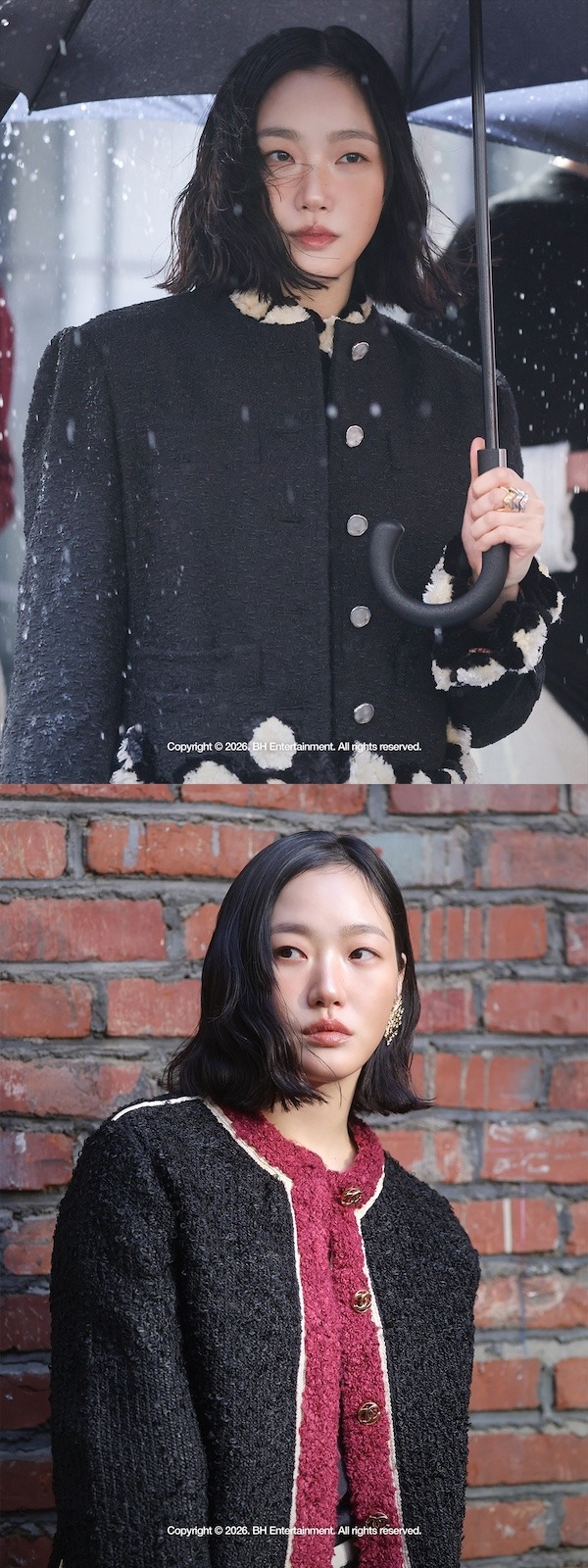 今回のビジュアルは、シャネル(CHANEL)の新クリエイティブ・ディレクター、マチュー・ブラジ(Matthieu Blazy)体制以降初の撮影であり、クラシックに現代的な解釈を加えたスタイリングが目を引く。キム・ゴウンは、ブランドの新たなムードの中においても、特有の世界観を自身なりのスタイルで見事に表現し、ビジュアルの完成度を高めた。