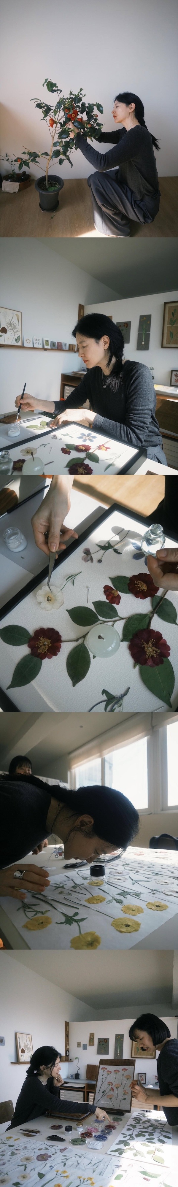 また別の写真には、乾燥させた花を一つずつ整え、作品作りをしている様子も収められている。イ・ヨンエ特有の優雅な雰囲気と繊細な手つきによって、美しいアート作品が誕生。作業に集中している横顔からも、特有の気品がにじみ出ていた。