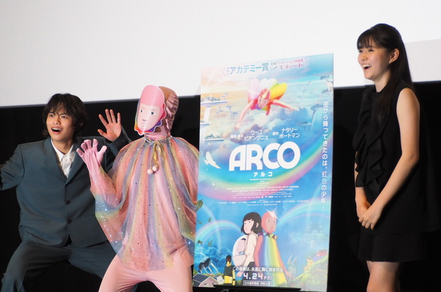 映画『ARCO/アルコ』初日舞台挨拶が4月24日(金)、TOHO シネマズ日比谷にて行われ、吹替版キャストの黒川想矢、堀越麗禾が登壇した。