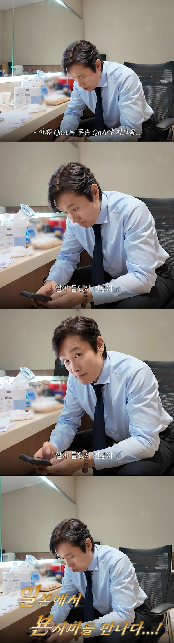 控室にいたイ・ビョンホンに対し、「イ・ビョンホンさん、Q&Aを撮ろうと思います」と声をかけたが、彼はスマートフォンに目を落としたまま、「いきなりQ&Aって何だよ」と、そっけない反応を見せた。